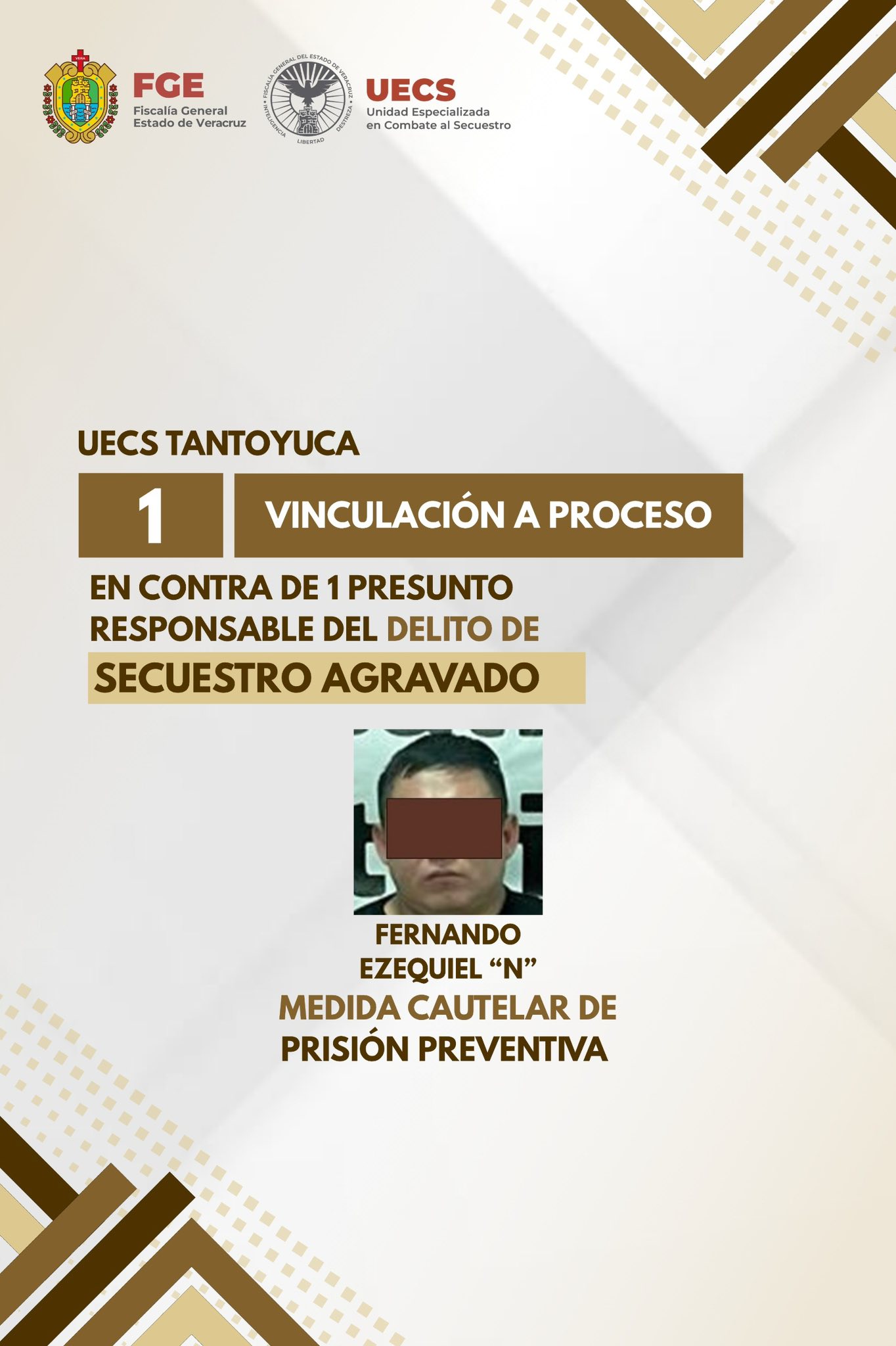 Como resultado del ๐˜๐—ฟ๐—ฎ๐—ฏ๐—ฎ๐—ท๐—ผ ๐—ฑ๐—ฒ ๐—ถ๐—ป๐˜ƒ๐—ฒ๐˜€๐˜๐—ถ๐—ด๐—ฎ๐—ฐ๐—ถ๐—ผฬ๐—ป ๐—ฒ๐˜€๐—ฝ๐—ฒ๐—ฐ๐—ถ๐—ฎ๐—น๐—ถ๐˜‡๐—ฎ๐—ฑ๐—ผ, durante el periodo comprendido del ๐Ÿต ๐—ฎ๐—น ๐Ÿญ๐Ÿฑ ๐—ฑ๐—ฒ ๐—ฎ๐—ฏ๐—ฟ๐—ถ๐—น, la ๐—™๐—ถ๐˜€๐—ฐ๐—ฎ๐—น๐—ถฬ๐—ฎ ๐—š๐—ฒ๐—ป๐—ฒ๐—ฟ๐—ฎ๐—น ๐—ฑ๐—ฒ๐—น ๐—˜๐˜€๐˜๐—ฎ๐—ฑ๐—ผ ๐—ฑ๐—ฒ ๐—ฉ๐—ฒ๐—ฟ๐—ฎ๐—ฐ๐—ฟ๐˜‚๐˜‡, a travรฉs de la Unidad Especializada en Combate al Secuestro y la Extorsiรณn (๐—จ๐—˜๐—–๐—ฆ) logra ๐˜ƒ๐—ถ๐—ป๐—ฐ๐˜‚๐—น๐—ฎ๐—ฐ๐—ถ๐—ผ๐—ป๐—ฒ๐˜€ ๐—ฎ ๐—ฝ๐—ฟ๐—ผ๐—ฐ๐—ฒ๐˜€๐—ผ que refuerzan el ๐—ฐ๐—ผ๐—บ๐—ฏ๐—ฎ๐˜๐—ฒ ๐—ฎ๐—น ๐—ฑ๐—ฒ๐—น๐—ถ๐˜๐—ผ ๐—ฑ๐—ฒ ๐˜€๐—ฒ๐—ฐ๐˜‚๐—ฒ๐˜€๐˜๐—ฟ๐—ผ.