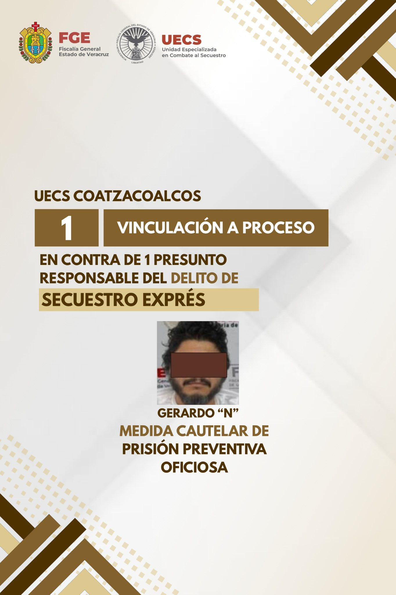 En otra acciรณn, en ๐—–๐—ผ๐—ฎ๐˜๐˜‡๐—ฎ๐—ฐ๐—ผ๐—ฎ๐—น๐—ฐ๐—ผ๐˜€ se logrรณ la ๐˜ƒ๐—ถ๐—ป๐—ฐ๐˜‚๐—น๐—ฎ๐—ฐ๐—ถ๐—ผฬ๐—ป ๐—ฎ ๐—ฝ๐—ฟ๐—ผ๐—ฐ๐—ฒ๐˜€๐—ผ de ๐—š๐—ฒ๐—ฟ๐—ฎ๐—ฟ๐—ฑ๐—ผ โ€œ๐—กโ€, como presunto responsable del delito de ๐˜€๐—ฒ๐—ฐ๐˜‚๐—ฒ๐˜€๐˜๐—ฟ๐—ผ ๐—ฒ๐˜…๐—ฝ๐—ฟ๐—ฒฬ๐˜€, por su probable participaciรณn en hechos ocurridos el ๐Ÿญ๐Ÿญ ๐—ฑ๐—ฒ ๐—ป๐—ผ๐˜ƒ๐—ถ๐—ฒ๐—บ๐—ฏ๐—ฟ๐—ฒ ๐—ฑ๐—ฒ ๐Ÿฎ๐Ÿฌ๐Ÿฎ๐Ÿฑ, en la ๐—ฐ๐—ผ๐—น๐—ผ๐—ป๐—ถ๐—ฎ ๐—ฃ๐—ฒ๐˜๐—ฟ๐—ผ๐—น๐—ฒ๐—ฟ๐—ฎ de ese municipio, donde dos vรญctimas presuntamente fueron privadas de su libertad mientras sujetos desconocidos allanaban su domicilio y sustraรญan diversas pertenencias, para posteriormente exigir un pago a cambio de no volver y causarles daรฑo.