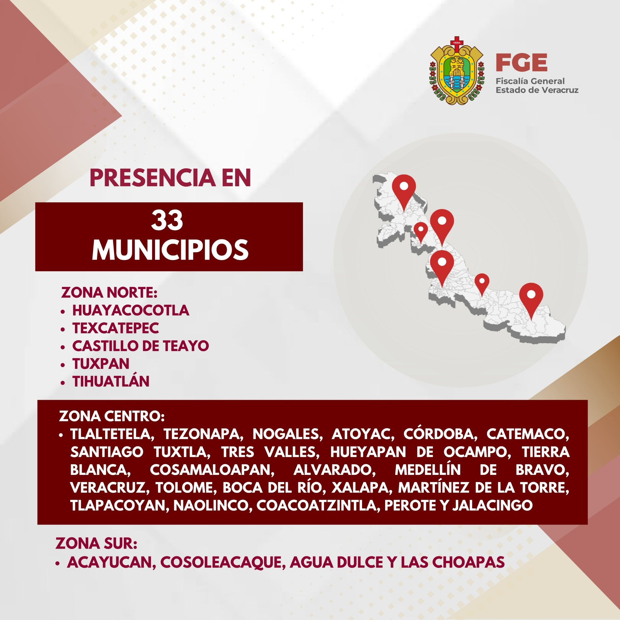 ๐—ญ๐—ผ๐—ป๐—ฎ ๐—–๐—ฒ๐—ป๐˜๐—ฟ๐—ผ: Tlaltetela, Tezonapa, Nogales, Atoyac, Cรณrdoba, Catemaco, Santiago Tuxtla, Tres Valles, Hueyapan de Ocampo, Tierra Blanca, Cosamaloapan, Alvarado, Medellรญn de Bravo, Veracruz, Tolome, Boca del Rรญo, Xalapa, Martรญnez de la Torre, Tlapacoyan, Naolinco, Coacoatzintla, Perote y Jalacingo.