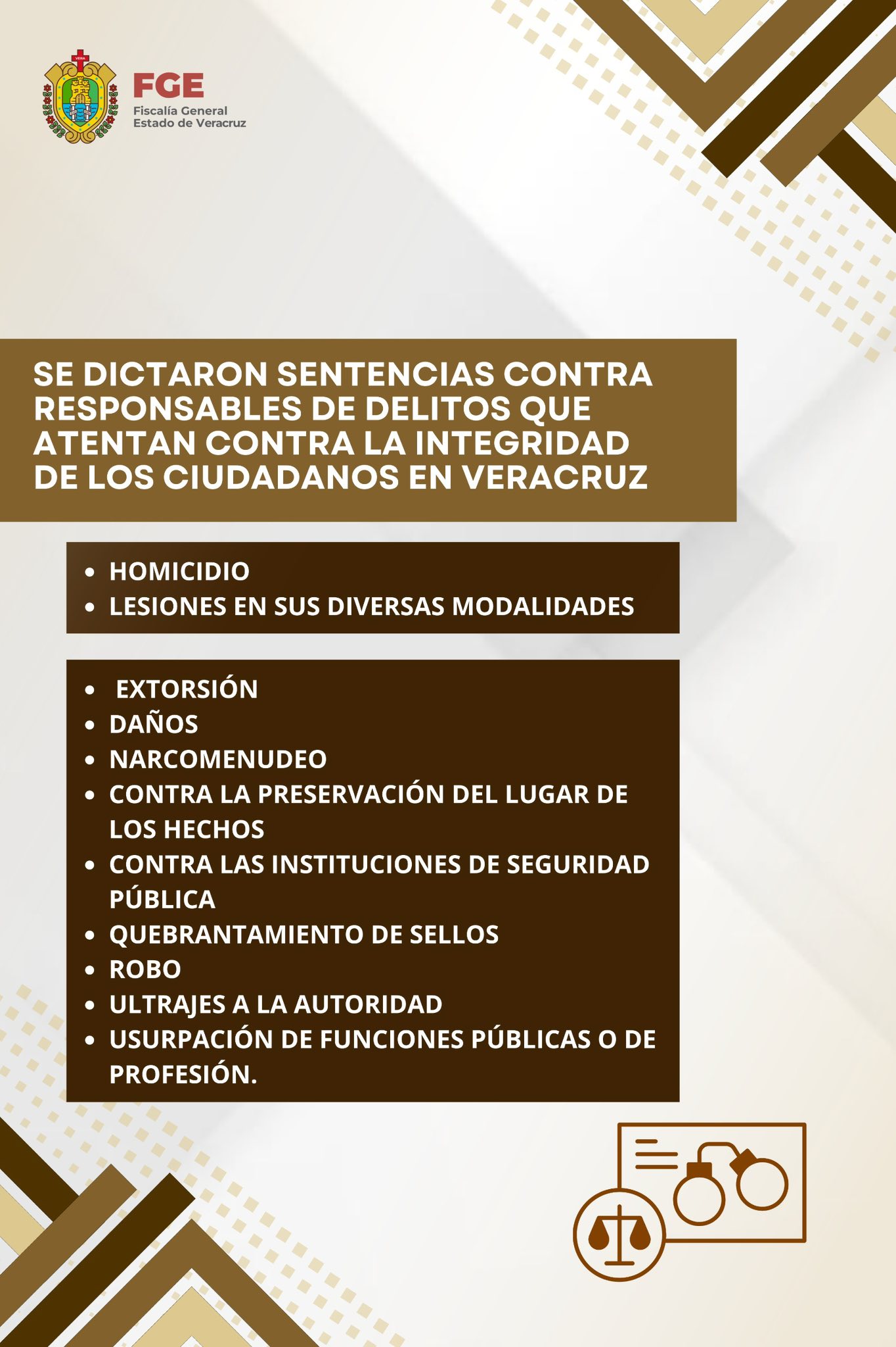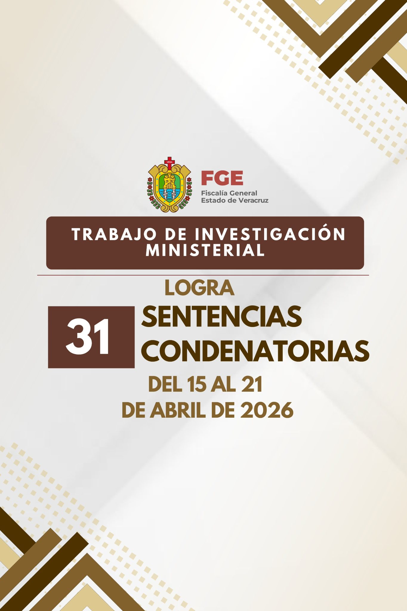 Como resultado del ๐๐ฟ๐ฎ๐ฏ๐ฎ๐ท๐ผ ๐ฑ๐ฒ ๐ถ๐ป๐๐ฒ๐๐๐ถ๐ด๐ฎ๐ฐ๐ถ๐ผฬ๐ป ๐บ๐ถ๐ป๐ถ๐๐๐ฒ๐ฟ๐ถ๐ฎ๐น, en el periodo comprendido del ๐ญ๐ฑ ๐ฎ๐น ๐ฎ๐ญ ๐ฑ๐ฒ ๐ฎ๐ฏ๐ฟ๐ถ๐น, la ๐๐ถ๐๐ฐ๐ฎ๐น๐ถฬ๐ฎ ๐๐ฒ๐ป๐ฒ๐ฟ๐ฎ๐น ๐ฑ๐ฒ๐น ๐๐๐๐ฎ๐ฑ๐ผ ๐ฑ๐ฒ ๐ฉ๐ฒ๐ฟ๐ฎ๐ฐ๐ฟ๐๐ logrรณ ๐ฏ๐ญ ๐๐ฒ๐ป๐๐ฒ๐ป๐ฐ๐ถ๐ฎ๐ ๐ฐ๐ผ๐ป๐ฑ๐ฒ๐ป๐ฎ๐๐ผ๐ฟ๐ถ๐ฎ๐, dictadas por el ๐ผฬ๐ฟ๐ด๐ฎ๐ป๐ผ ๐ท๐๐ฟ๐ถ๐๐ฑ๐ถ๐ฐ๐ฐ๐ถ๐ผ๐ป๐ฎ๐น en contra de responsables de delitos tales como ๐ต๐ผ๐บ๐ถ๐ฐ๐ถ๐ฑ๐ถ๐ผ, ๐ฒ๐