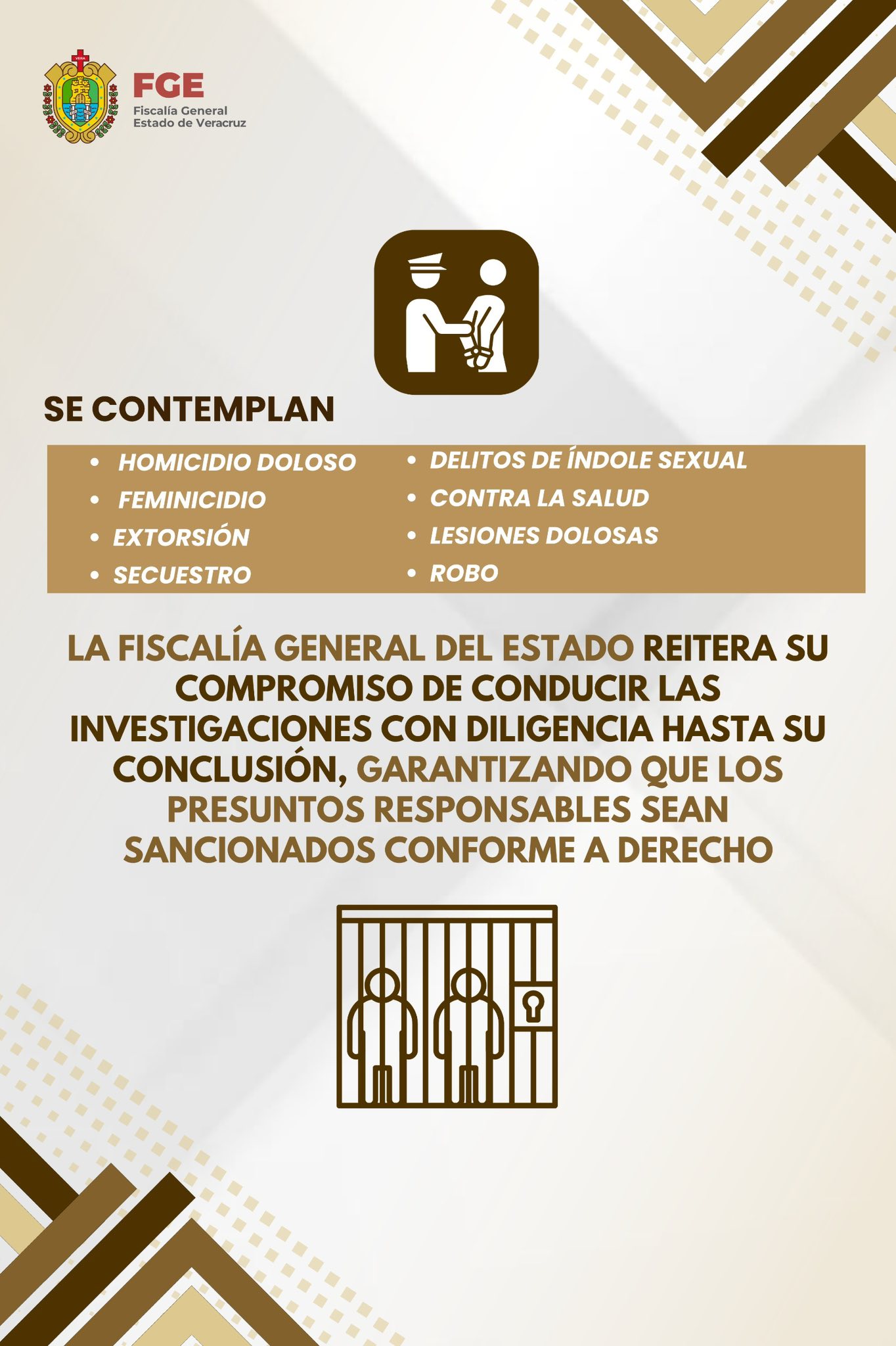 Cabe señalar que, dentro del total de mandamientos ejecutados, se incluyen 𝗽𝗿𝗼𝗰𝗲𝘀𝗼𝘀 𝗿𝗲𝗹𝗮𝗰𝗶𝗼𝗻𝗮𝗱𝗼𝘀 𝗰𝗼𝗻 𝗰𝗼𝗻𝗱𝘂𝗰𝘁𝗮𝘀 𝗰𝗼𝗺𝗼 𝗲𝗹 𝗵𝗼𝗺𝗶𝗰𝗶𝗱𝗶𝗼 𝗱𝗼𝗹𝗼𝘀𝗼, 𝗳𝗲𝗺𝗶𝗻𝗶𝗰𝗶𝗱𝗶𝗼, 𝗲𝘅𝘁𝗼𝗿𝘀𝗶𝗼́𝗻 𝘆 𝘀𝗲𝗰𝘂𝗲𝘀𝘁𝗿𝗼. Asimismo, se contemplan delitos de índole sexual y contra la salud, además de otros ilícitos atendidos durante este período.