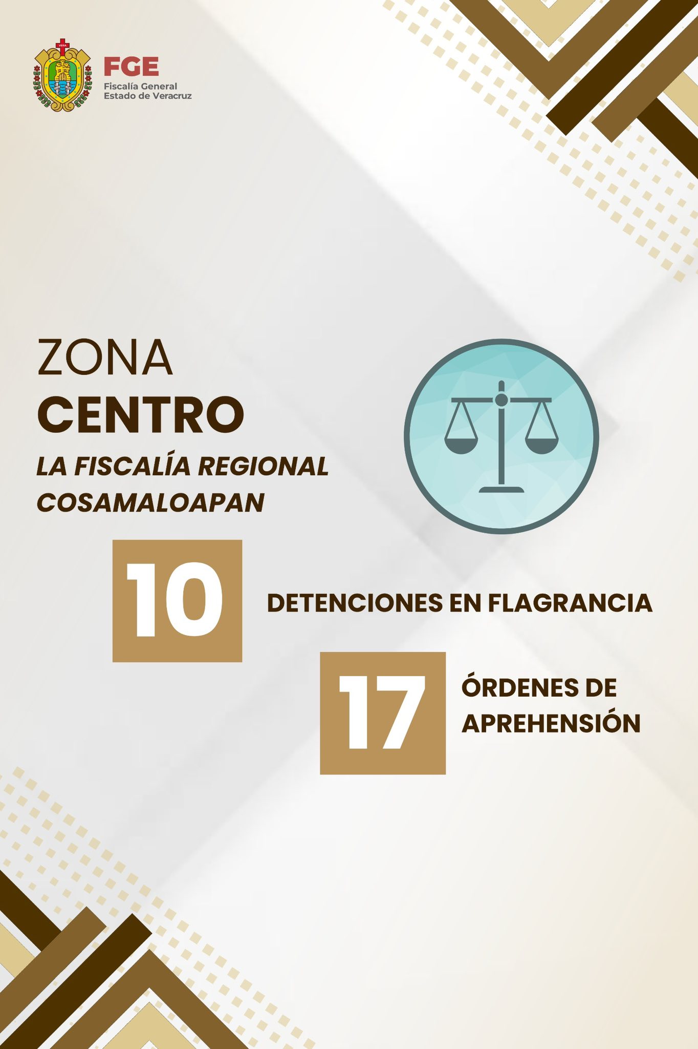 Asimismo, en la 𝘇𝗼𝗻𝗮 𝗰𝗲𝗻𝘁𝗿𝗼, la 𝗙𝗶𝘀𝗰𝗮𝗹𝗶́𝗮 𝗥𝗲𝗴𝗶𝗼𝗻𝗮𝗹 𝗩𝗲𝗿𝗮𝗰𝗿𝘂𝘇 concretó 𝟯 𝗱𝗲𝘁𝗲𝗻𝗰𝗶𝗼𝗻𝗲𝘀 𝗲𝗻 𝗳𝗹𝗮𝗴𝗿𝗮𝗻𝗰𝗶𝗮 y cumplimentó 𝟳 𝗼́𝗿𝗱𝗲𝗻𝗲𝘀 𝗱𝗲 𝗮𝗽𝗿𝗲𝗵𝗲𝗻𝘀𝗶𝗼́𝗻; en tanto que la 𝗙𝗶𝘀𝗰𝗮𝗹𝗶́𝗮 𝗥𝗲𝗴𝗶𝗼𝗻𝗮𝗹 𝗖𝗼́𝗿𝗱𝗼𝗯𝗮 registró 𝟴 𝗱𝗲𝘁𝗲𝗻𝗰𝗶𝗼𝗻𝗲𝘀 𝗲𝗻 𝗳𝗹𝗮𝗴𝗿𝗮𝗻𝗰𝗶𝗮 y 𝗲𝗷𝗲𝗰𝘂𝘁𝗼́ 𝟴 𝗼́𝗿𝗱𝗲𝗻𝗲𝘀.