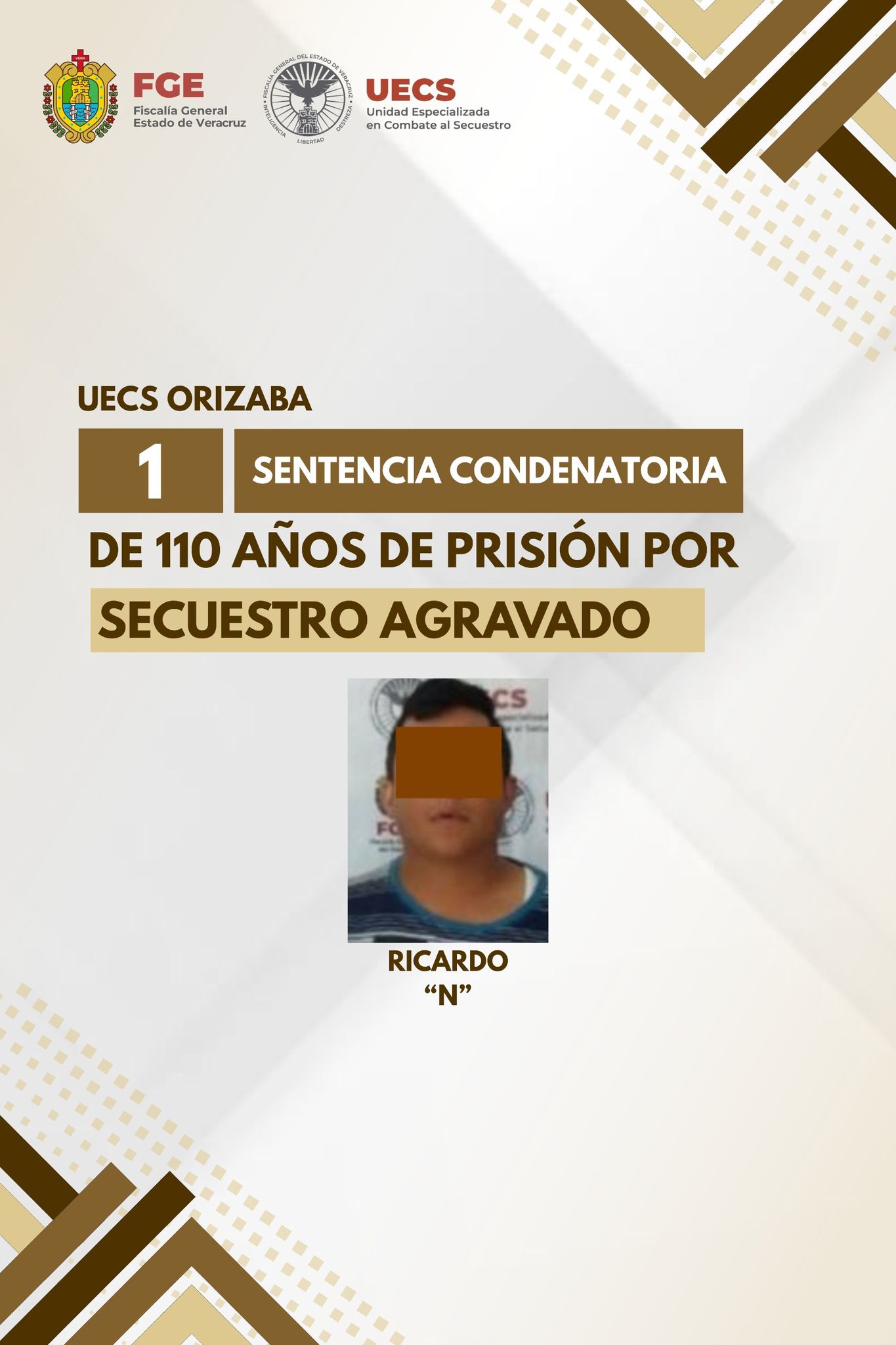 En cuanto a ๐๐ฒ๐ป๐๐ฒ๐ป๐ฐ๐ถ๐ฎ๐ ๐ฐ๐ผ๐ป๐ฑ๐ฒ๐ป๐ฎ๐๐ผ๐ฟ๐ถ๐ฎ๐, en la ciudad de ๐ข๐ฟ๐ถ๐๐ฎ๐ฏ๐ฎ se logrรณ una pena privativa de la libertad de ๐ญ๐ญ๐ฌ ๐ฎ๐ปฬ๐ผ๐ ๐ฑ๐ฒ ๐ฝ๐ฟ๐ถ๐๐ถ๐ผฬ๐ป en contra de ๐ฅ๐ถ๐ฐ๐ฎ๐ฟ๐ฑ๐ผ โ๐กโ, como responsable del ๐ฑ๐ฒ๐น๐ถ๐๐ผ ๐ฑ๐ฒ ๐๐ฒ๐ฐ๐๐ฒ๐๐๐ฟ๐ผ ๐ฎ๐ด๐ฟ๐ฎ๐๐ฎ๐ฑ๐ผ, por ๐ต๐ฒ๐ฐ๐ต๐ผ๐ ocurridos el 16 de ๐๐ฒ๐ฝ๐๐ถ๐ฒ๐บ๐ฏ๐ฟ๐ฒ ๐ฑ๐ฒ๐น ๐ฎ๐ฌ๐ฎ๐ฌ en la carretera que comunica a las localidades de Jalapilla y Tlilapan, pertenecientes al ๐บ๐๐ป๐ถ๐ฐ๐ถ๐ฝ๐ถ๐ผ ๐ฑ๐ฒ ๐ฅ๐ฎ๐ณ๐ฎ๐ฒ๐น ๐๐ฒ๐น๐ด๐ฎ๐ฑ๐ผ.