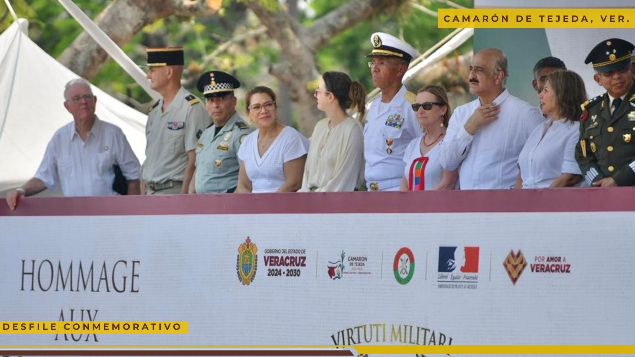 Posteriormente, se llevรณ a cabo un ๐ฑ๐ฒ๐๐ณ๐ถ๐น๐ฒ ๐ฐ๐ผ๐ป๐บ๐ฒ๐บ๐ผ๐ฟ๐ฎ๐๐ถ๐๐ผ con la participaciรณn de contingentes de la Secretarรญa de la Defensa Nacional, Batallรณn de Infanterรญa, Secretarรญa de Marina, Guardia Nacional, cadetes de la Heroica Escuela Naval Militar, Secretarรญa de Seguridad Pรบblica, elementos de Trรกnsito Estatal y Municipal y estudiantes de diversas instituciones educativas de la regiรณn.