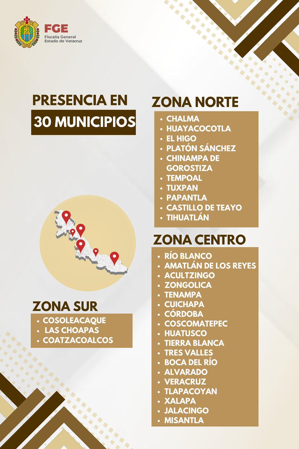๐ญ๐ผ๐ป๐ฎ ๐๐ฒ๐ป๐๐ฟ๐ผ: Rรญo Blanco, Amatlรกn de los Reyes, Acultzingo, Zongolica, Tenampa, Cuichapa, Cรณrdoba, Coscomatepec, Huatusco, Tierra Blanca, Tres Valles, Boca del Rรญo, Alvarado, Veracruz, Tlapacoyan, Xalapa, Jalacingo y Misantla.