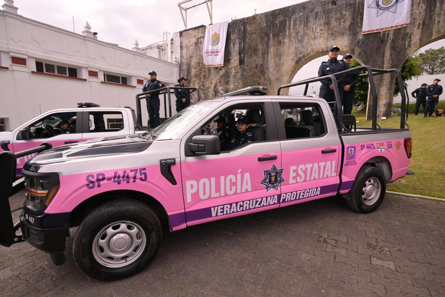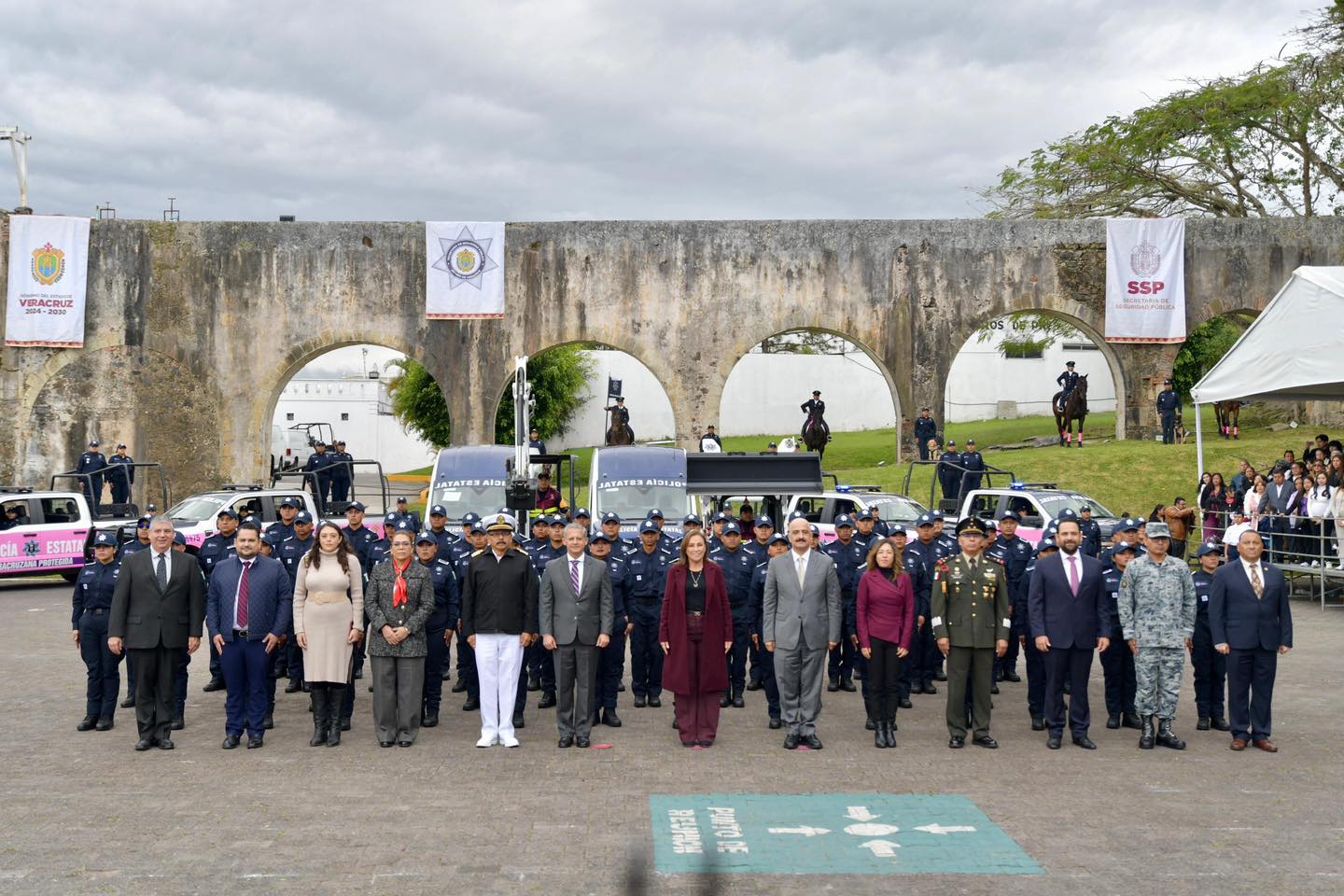 En el marco de la ceremonia, la Gobernadora informó sobre la entrega de equipamiento estratégico y táctico, vehículos especializados para las unidades de K9, Policía Femenina, así como los que se integrarán al programa Veracruzana Protegida, el cual ha brindado más de mil 300 atenciones a mujeres en situación de riesgo, a través de órdenes de protección emitidas por un juez, como parte de una política prioritaria de protección y atención integral.Asimismo, se llevó a cabo la entrega de equipo para apoyar las acciones del Plan Tajín durante emergencias.