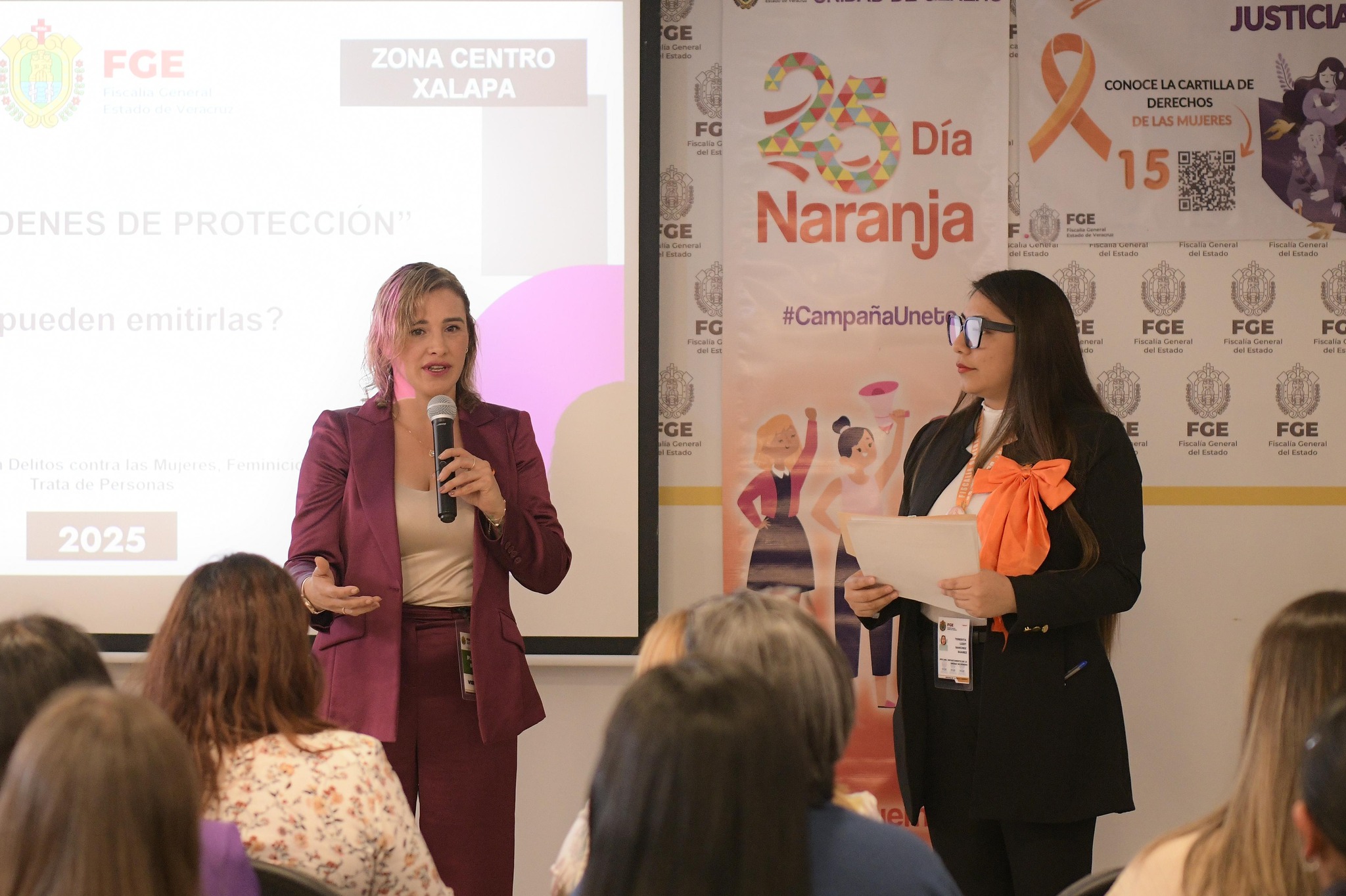 – Actividad dirigida a Unidades de Género de la APE, organismos autónomos y diferentes autoridades administrativas.Xalapa, Ver., 26 de noviembre 2025.- La Fiscalía General del Estado, encabezada por Verónica Hernández Giadáns, a través de la Unidad de Género en coordinación con el Instituto Veracruzano de las Mujeres, se unió a los 16 días de activismo contra la violencia de género y la promoción de la Cartilla de los Derechos de las Mujeres, llevando a cabo la conferencia en modalidad híbrida denominada: Medidas y Ordenes de protección, ¿Quiénes pueden emitirlas?.Esta capacitación estuvo dirigida a titulares de las Unidades de Género de los entes públicos y autónomos del Estado de Veracruz, personal del Instituto Veracruzano de las Mujeres, directoras de los Institutos Municipales de las Mujeres y/o personal de contacto para la atención de mujeres víctimas de violencia de género. La ponencia estuvo a cargo de personal de la Fiscalía Coordinadora Especializada en delitos contra las Mujeres, Feminicidio, Familias y Trata de Personas, quien destacó y refirió los diferentes instrumentos jurídicos que definen las medidas u órdenes de protección, como aquellos actos de urgente aplicación en función del interés superior de la víctima. Estuvieron presentes en el evento la C. Roberta Ayala Luna, Fiscal Coordinadora Especializada en Delitos contra las Mujeres, Feminicidio, Familia y Trata de Persona; la C. Yaisa Elena Hernández Reyes, Fiscal Coordinadora Especializada en Asuntos indígenas y de Derechos Humanos; la C. Zaira Fabiola del Toro Olivares Directora General del Instituto Veracruzano de las Mujeres; la C. Teresita Lizet Sánchez Suárez, Jefa del Departamento de la Unidad de Género. Así como Titulares de las Unidades de Género de los entes públicos y autónomos del Estado de Veracruz, personal del Instituto Veracruzano de las Mujeres, directoras de los Institutos Municipales de las Mujeres y/o personal de contacto para la atención de mujeres víctimas de violencia de género.Con estas actividades la Fiscalía General del Estado, continúa trabajando en pro de los derechos de las Mujeres y Niñas y la erradicación de los diferentes tipos de violencias.