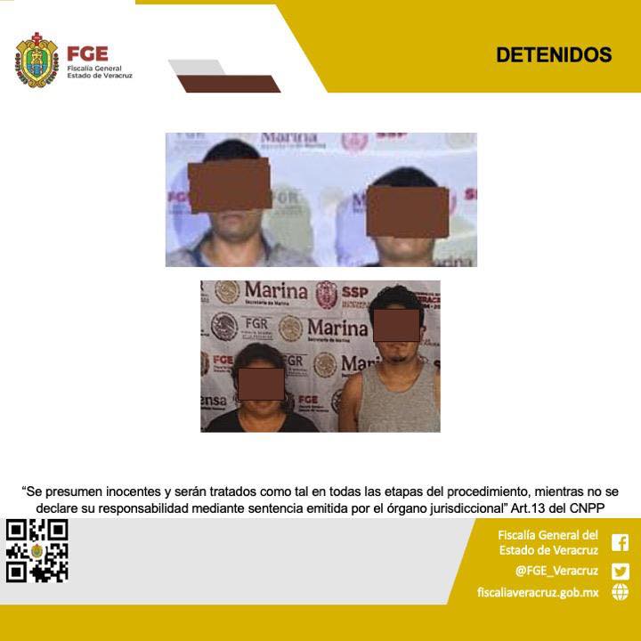 • Total de la semana: 5 operativos realizados y 4 personas detenidas.Xalapa, Ver., a 3 de noviembre del 2025.- La Fiscalía General del Estado informa los resultados de los operativos llevados a cabo en diversas regiones del estado, del día 27 de octubre al 2 de noviembre del año en curso, en el marco de la Nueva Estrategia de Seguridad Nacional, con el trabajo coordinado de la Policía Ministerial, el Ejército Mexicano, la Secretaría de Marina, la Guardia Nacional y la Secretaría de Seguridad Pública Estatal.Fiscalía Regional Tuxpan• Operativos: 2 en Papantla y Coyutla.• Resultados: Detención en flagrancia de 2 personas como presuntas responsables de los delitos contra la salud y contra las instituciones de seguridad pública, así como aseguramiento de tablas de castigo, casquillos y cartuchos balísticos, una sustancia granulada con características similares al cristal, un arma de fuego, un cargador y bolsas tipo Ziploc.Fiscalía Regional Cosamaloapan• Operativos: 1 en Cosamaloapan.• Resultados: Detención en flagrancia de 2 personas y aseguramiento de motocicletas, droga, celulares y numerario en efectivo.Fiscalía Regional Veracruz• Operativos: 2 en Veracruz.• Resultados: Aseguramiento de un arma de fuego, cartuchos balísticos, una hoja con anotaciones, fotografías, un monitor, un CPU, una identificación y credenciales.La Fiscal General reafirma su compromiso de continuar reforzando las acciones en materia de seguridad en todo el territorio estatal, en estrecha colaboración con las fuerzas estatales y federales, para lograr resultados contundentes en el combate a la delincuencia, preservando la paz y el orden en el estado de Veracruz.