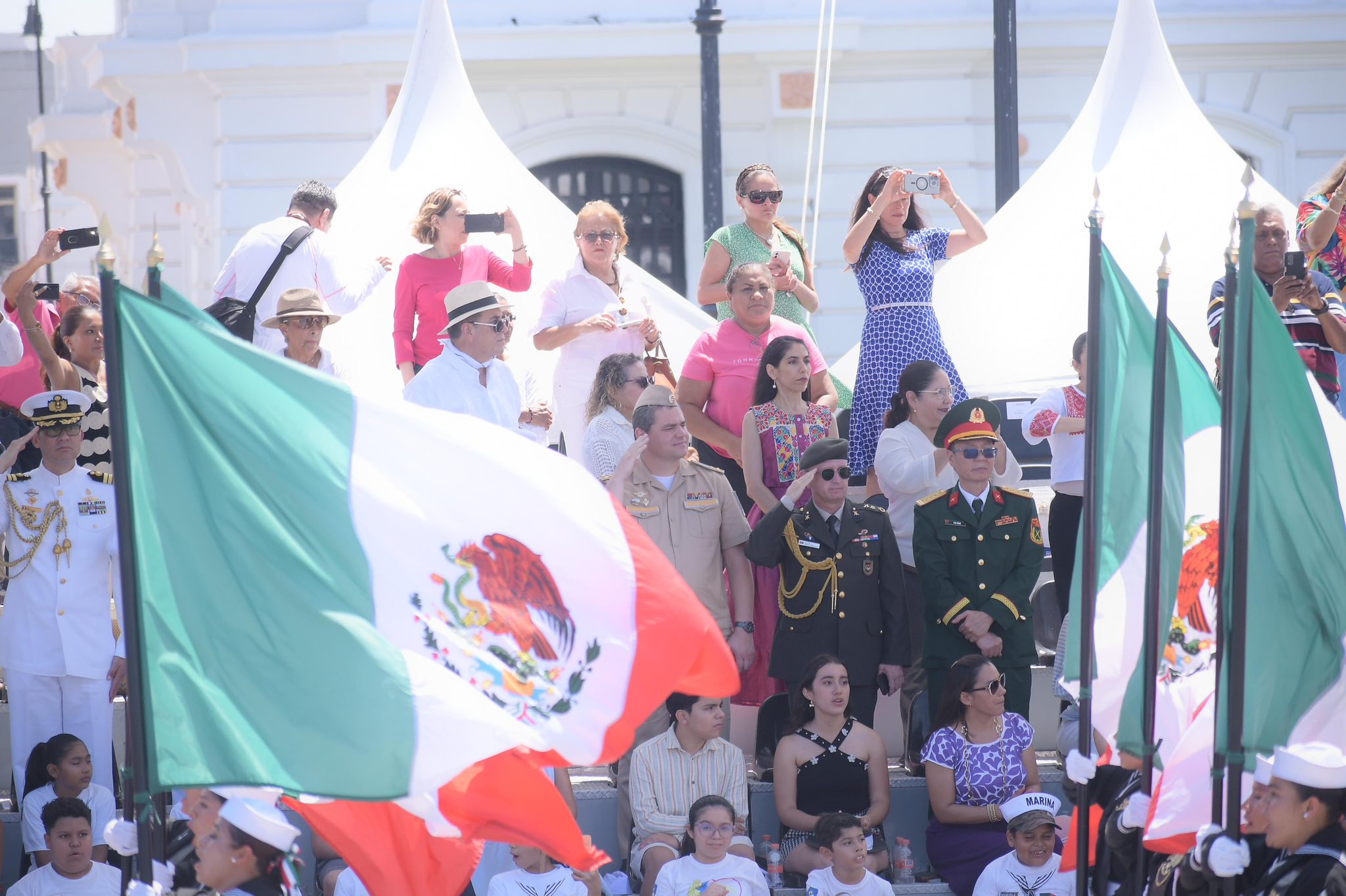 Veracruz, Ver., 4 de octubre de 2025.-La Fiscal General del Estado, Verónica Hernández Giadáns, asistió como invitada especial a la ceremonia y desfile naval conmemorativo por el 204 aniversario del nacimiento de la Armada de México y el 201 aniversario de la promulgación de la Constitución Federal de los Estados Unidos Mexicanos de 1824. El acto fue presidido por la Presidenta de México, Claudia Sheinbaum Pardo, quien destacó la importancia de mantener los valores de lealtad, disciplina y servicio que caracterizan a la institución naval. Durante el evento se inauguró la Plaza del Heroísmo Veracruzano, en memoria del hecho histórico que exalta la libertad del país y la labor de las fuerzas armadas. Un contingente de las Fuerzas y Regiones Navales realizó una demostración de operaciones navales, terrestres y aéreas, seguida del desfile conmemorativo. La Fiscal General reconoce la labor de la Armada de México en la defensa de la seguridad nacional y refrenda su compromiso de continuar fortaleciendo el trabajo coordinado en beneficio de la ciudadanía veracruzana.