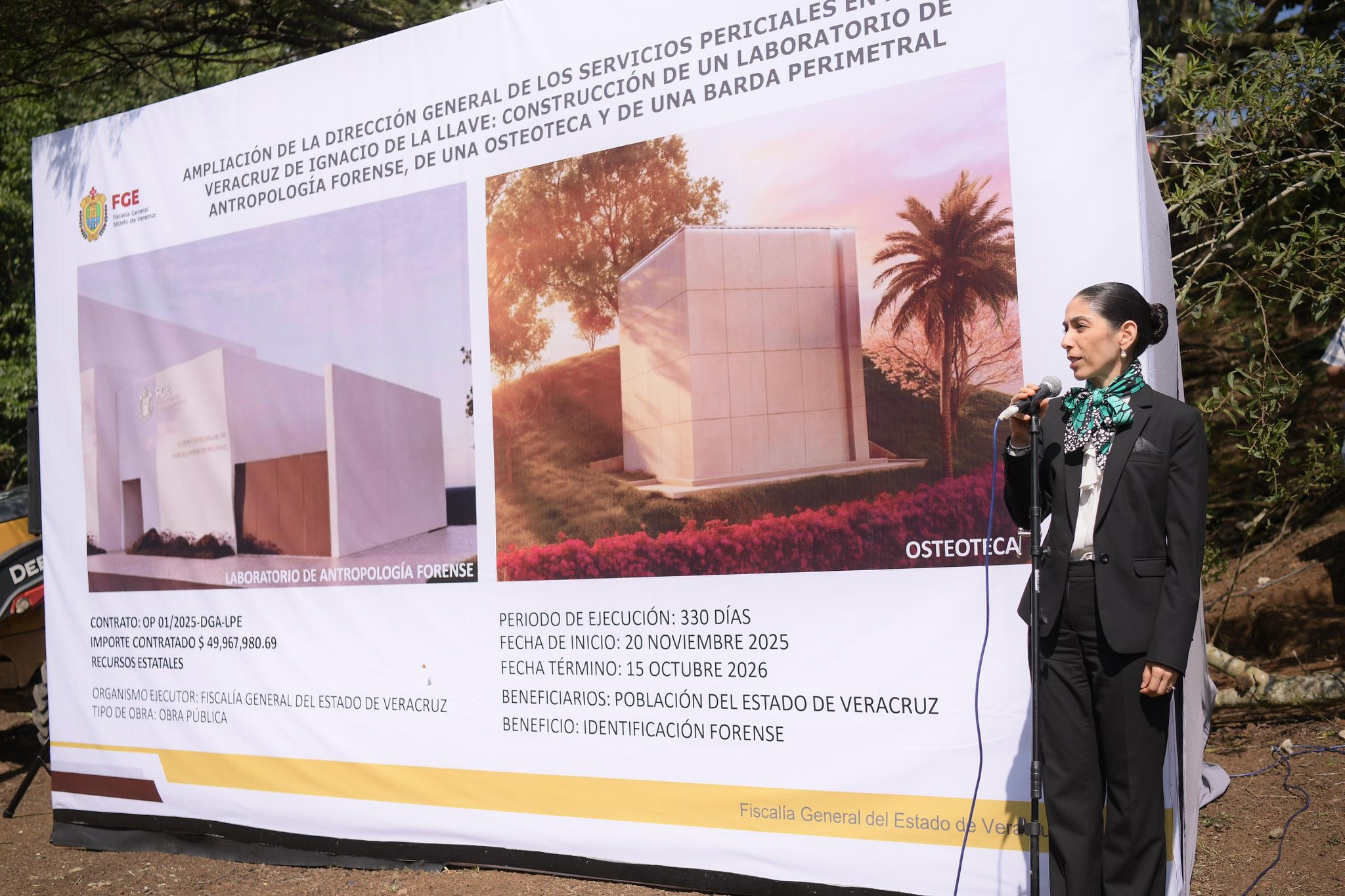 Xalapa, Ver., 20 de noviembre del 2025.-La Fiscal General del Estado, Verónica Hernández Giadáns, dio el banderazo de inicio a los trabajos de construcción de la Ampliación de la Dirección General de los Servicios Periciales.Esta ampliación contempla la edificación, en una superficie de 935 metros cuadrados, de un Laboratorio de Antropología Forense, una Osteoteca y una Barda Perimetral, con una inversión de 49.9 millones de pesos de recursos estatales, destinada al fortalecimiento de las capacidades institucionales en materia pericial.La Fiscal General señala que esta obra constituye un paso firme en la consolidación de una infraestructura moderna y adecuada para el desarrollo de funciones especializadas, destacando que contar con mejores condiciones laborales y espacios dignos, fortalece el desempeño institucional, impulsa la productividad y genera mayor entusiasmo en el personal.