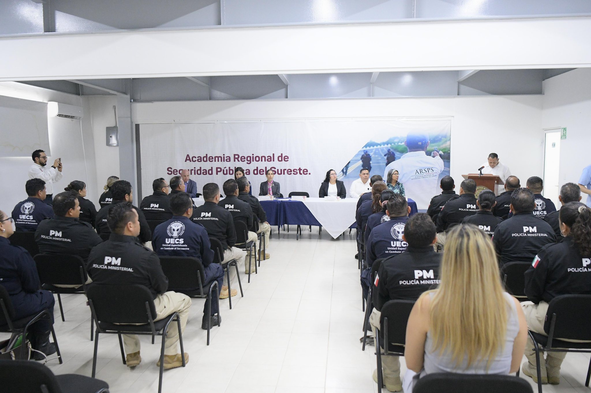 Xalapa, Ver., 3 de octubre de 2025.-La Fiscal General del Estado, Verónica Hernández Giadáns, presidió la Ceremonia de Clausura de los cursos de capacitación impartidos por el Instituto de Formación Profesional, dirigidos a servidoras y servidores públicos del organismo autónomo.Destacando entre ellos, el curso “Nueva legislación en materia de Transparencia: fortalezas y retos”, dirigido principalmente a enlaces de transparencia. Así como el “Diplomado de la Función del Policía en el Sistema Penal”, impartido a policías de investigación adscritos a la Policía Ministerial y a la Unidad Especializada en Combate al Secuestro y la Extorsión, el cual tuvo como objetivo fortalecer sus habilidades en investigación de delitos y litigación, profundizando en su papel dentro del sistema penal acusatorio.También concluyó la capacitación “Aspectos fundamentales y legales sobre el cateo en materia penal”, en el que participaron policías de investigación de la Policía Ministerial, la Unidad Especializada en Combate al Secuestro y la Extorsión y la Fiscalía de Investigaciones Ministeriales. Hernández Giadáns exhortó a las y los participantes a aplicar los conocimientos adquiridos para el mejor desempeño de sus funciones, reiterando su compromiso con la capacitación continua y el fortalecimiento de la procuración de justicia en beneficio de la sociedad veracruzana.