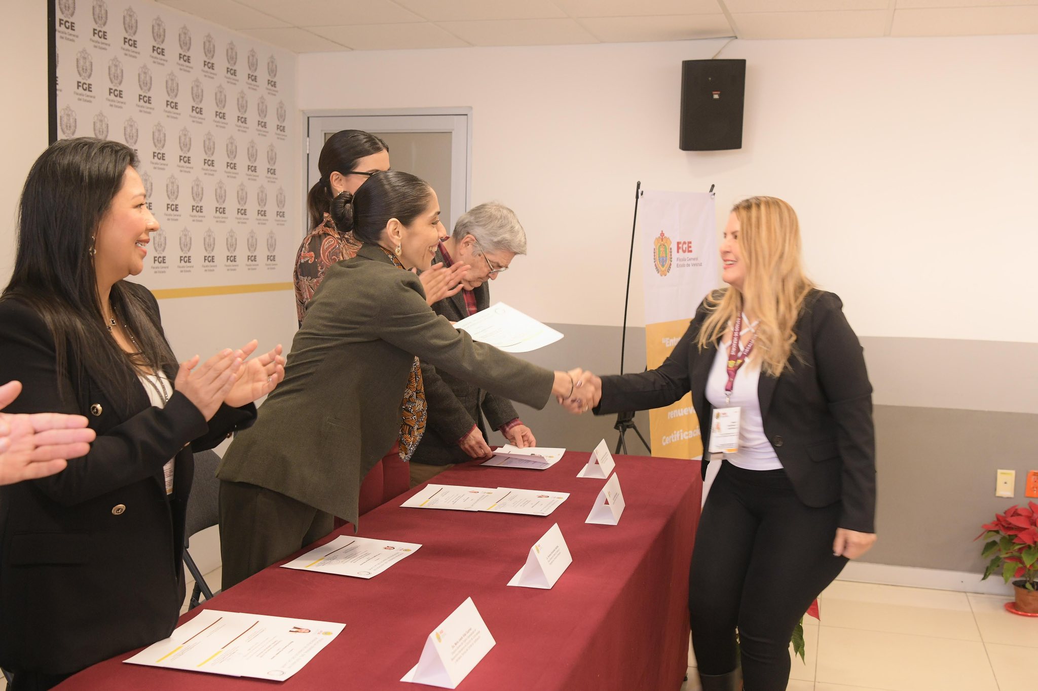 Xalapa, Ver., 6 de diciembre del 2025.-En oficinas centrales, la Fiscal General del Estado, Verónica Hernández Giadáns, presidió la ceremonia de Entrega de Constancias de Renovación de Certificación a las y los Facilitadores del Órgano Especializado en Mecanismos Alternativos de Solución de Controversias. La Fiscal General destaca la dedicación de las y los facilitadores que integran el Órgano Especializado en Mecanismos Alternativos de Solución de Controversias por consolidar su preparación, subrayando que la actualización de certificaciones y la formación técnica fortalecen la operación institucional, despresurizando el sistema judicial y generando confianza para la resolución de conflictos. Hernández Giadáns hizo un llamado a las y los servidores públicos para mantener una conducta íntegra y actuar conforme a la ley, reafirmando que el compromiso ético es fundamental para fortalecer la procuración de justicia.Asistieron el Abogado General, Oscar Guillermo Sánchez López Portillo; la Directora General del Órgano Especializado en Mecanismos Alternativos de Solución de Controversias, María Josefa Vidal Guzmán; la Directora del Instituto de Formación Profesional, Valeria Morales Delgado, y el Subdirector de Facilitadores.