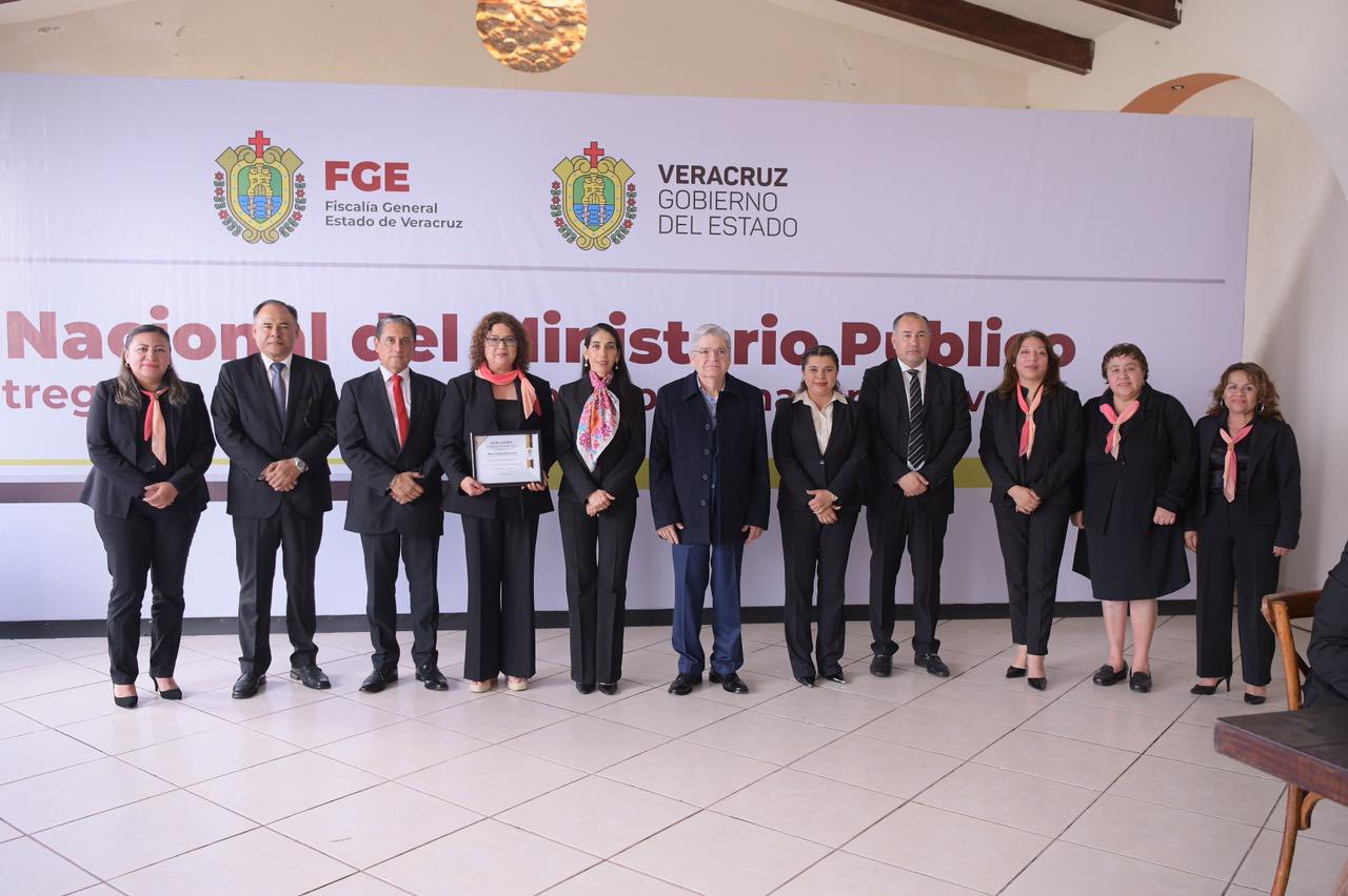 Xalapa, Ver., 2 de diciembre de 2025.- La Fiscal General del Estado, Verónica Hernández Giadáns, presidió la entrega de reconocimientos a servidoras y servidores públicos con motivo del Día Nacional del Ministerio Público, ceremonia realizada en esta fecha luego de haberse pospuesto el pasado 22 de octubre por los fenómenos naturales registrados en la zona norte del estado. Durante el acto, la Fiscal General señaló que la labor del Ministerio Público se fortalece a través del trabajo articulado de fiscales, policías ministeriales y peritos, quienes integran la trilogía investigadora, y que estas distinciones reflejan su dedicación, esfuerzo, experiencia y compromiso, elementos que permiten avanzar en la consolidación de una sociedad regida por la legalidad y en la que las víctimas encuentren respuestas claras.Subrayó que como servidoras y servidores públicos, cada día se presenta la oportunidad de demostrar que el desempeño institucional se guía por la ética, el profesionalismo, la honestidad y la convicción, y que deben sentirse orgullosos de contribuir a la construcción de justicia y paz.“Nuestro deber es seguir avanzando con convicción, unidad y un claro propósito.”