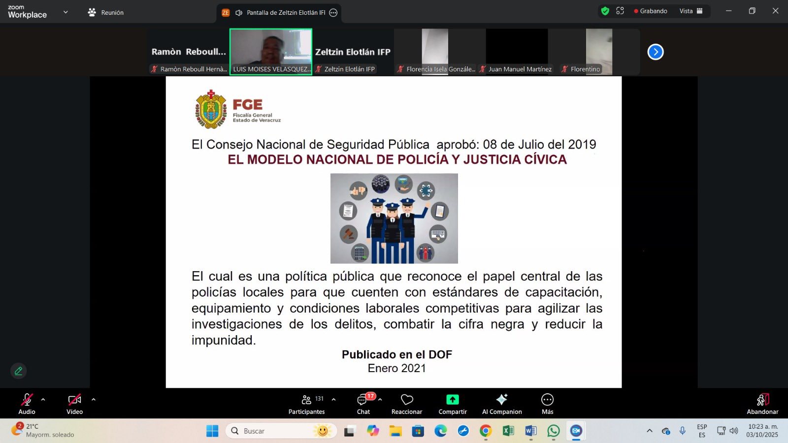 Xalapa, Ver., 28 de noviembre de 2025.-La Fiscalía General del Estado, encabezada por Verónica Hernández Giadáns, a través del Instituto de Formación Profesional, concluyó el “Foro Capacita FGE”, el cual se desarrolló, de manera virtual, en 40 sesiones a lo largo del año.Este espacio virtual, cuyas sesiones iniciaron el 7 de febrero y concluyeron este día, se creó este año con el objetivo de generar, reforzar y compartir conocimientos, intercambiar experiencias y promover la participación activa de las personas servidoras públicas de esta institución, a fin de fortalecer las competencias que impacten favorablemente en sus labores.En las capacitaciones, en las que participó personal de todos los perfiles, se contó con la participación de expertos docentes e instructores especialistas en diferentes áreas del conocimiento, nacionales e internacionales.Algunos de los temas abordados fueron el Protocolo de Estambul, inteligencia policial, odontología forense, narcomenudeo, razonamiento probatorio e inteligencia artificial, interrogatorio y contrainterrogatorio policial, psicometría forense en delitos sexuales, la extorsión como fenómeno criminal, factores sociales asociados con la desaparición de personas, elementos balísticos en el lugar de los hechos, mediación penal en la etapa de investigación, formas de detención, genética forense, entre otros.Con estas acciones, la Fiscalía General reitera su compromiso con la capacitación permanente de sus elementos, a través de la promoción de las actividades académicas.