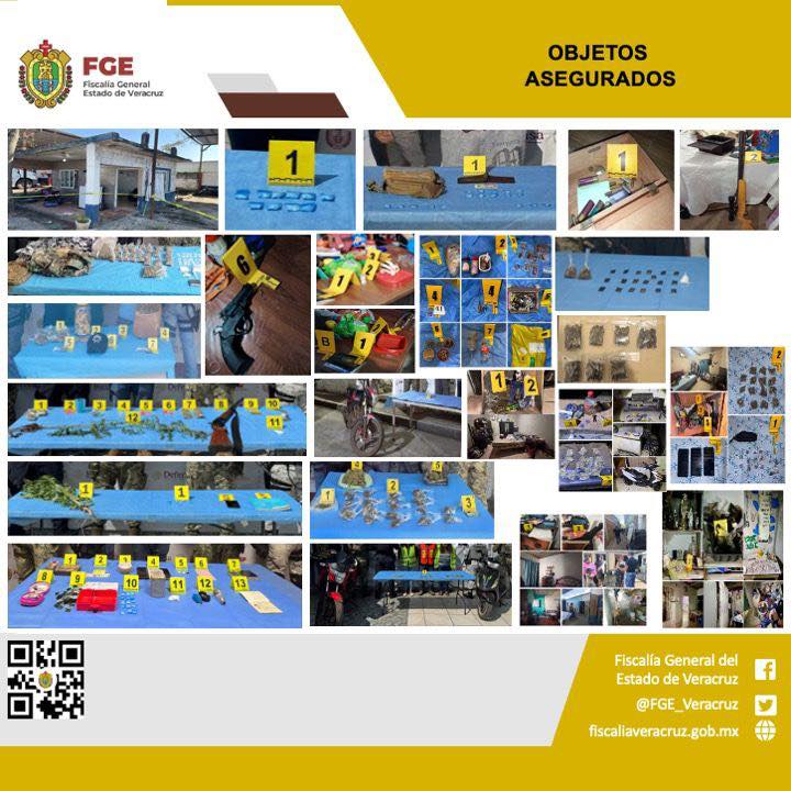 Los cateos se efectuaron en los municipios de Córdoba, Orizaba, Tlaltetela, Totutla, Minatitlán, Santiago Sochiapan, Otatitlán, Hueyapan de Ocampo, San Andrés Tuxtla, Lerdo de Tejada, Tuxpan, Poza Rica, Álamo, Manlio Fabio Altamirano, Alvarado, La Antigua y Veracruz.Se aseguró una planta y hierba verde seca con características similares a las de la marihuana, una sustancia con características similares a las del cristal, tablas de castigo, casquillos y cartuchos balísticos, pipas de diferentes materiales y hechizas, identificaciones y tarjetas de diversas instituciones, teléfonos celulares y libretas con anotaciones.