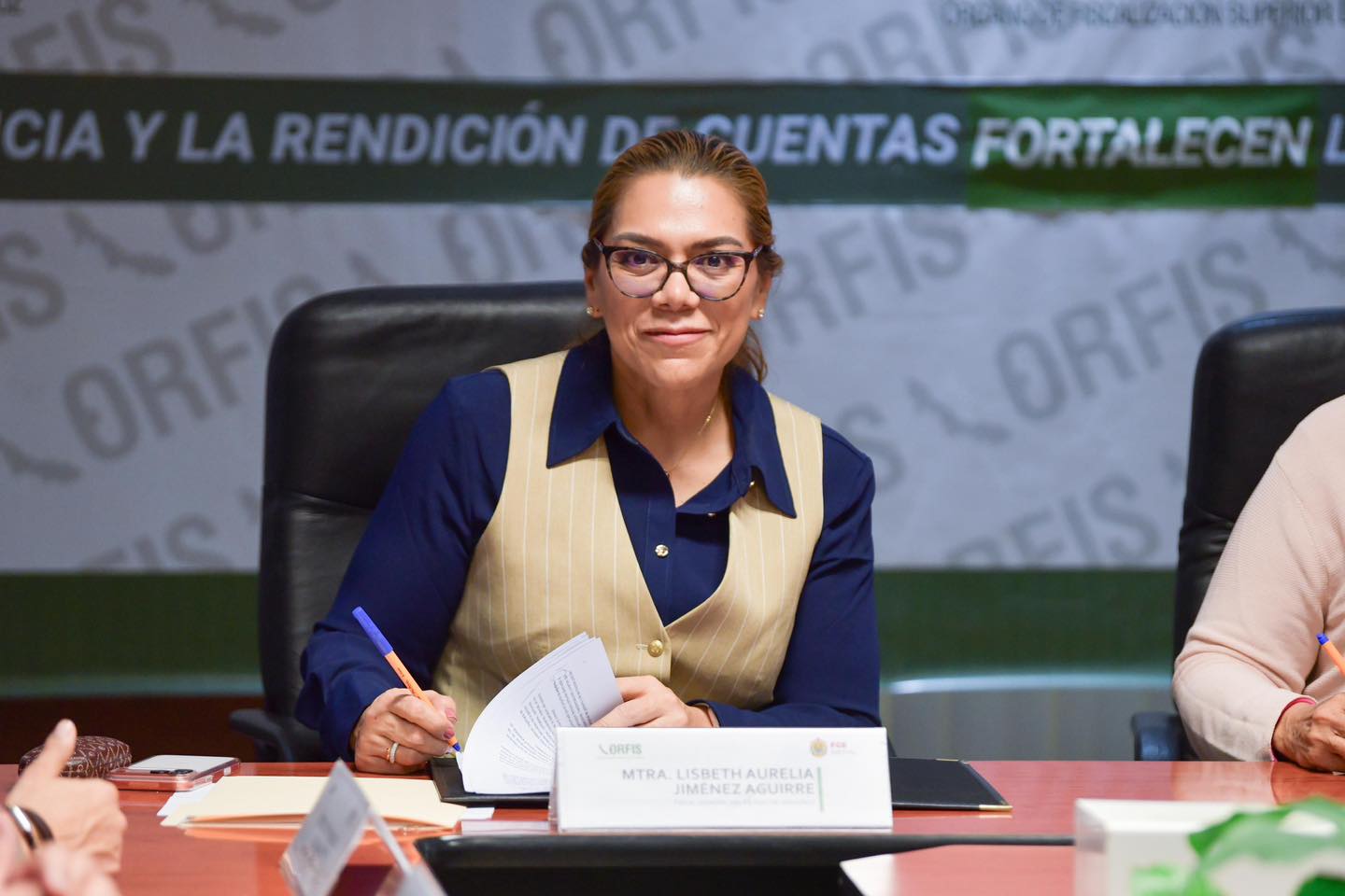 La Fiscal General del Estado, Lisbeth Aurelia Jiménez Aguirre, participó en la firma de un convenio de colaboración con la Auditora General Delia González Cobos, titular del Órgano de Fiscalización Superior del Estado de Veracruz (ORFIS), con el objetivo de fortalecer los mecanismos de coordinación institucional y el intercambio de información en materia de control y supervisión del ejercicio público.