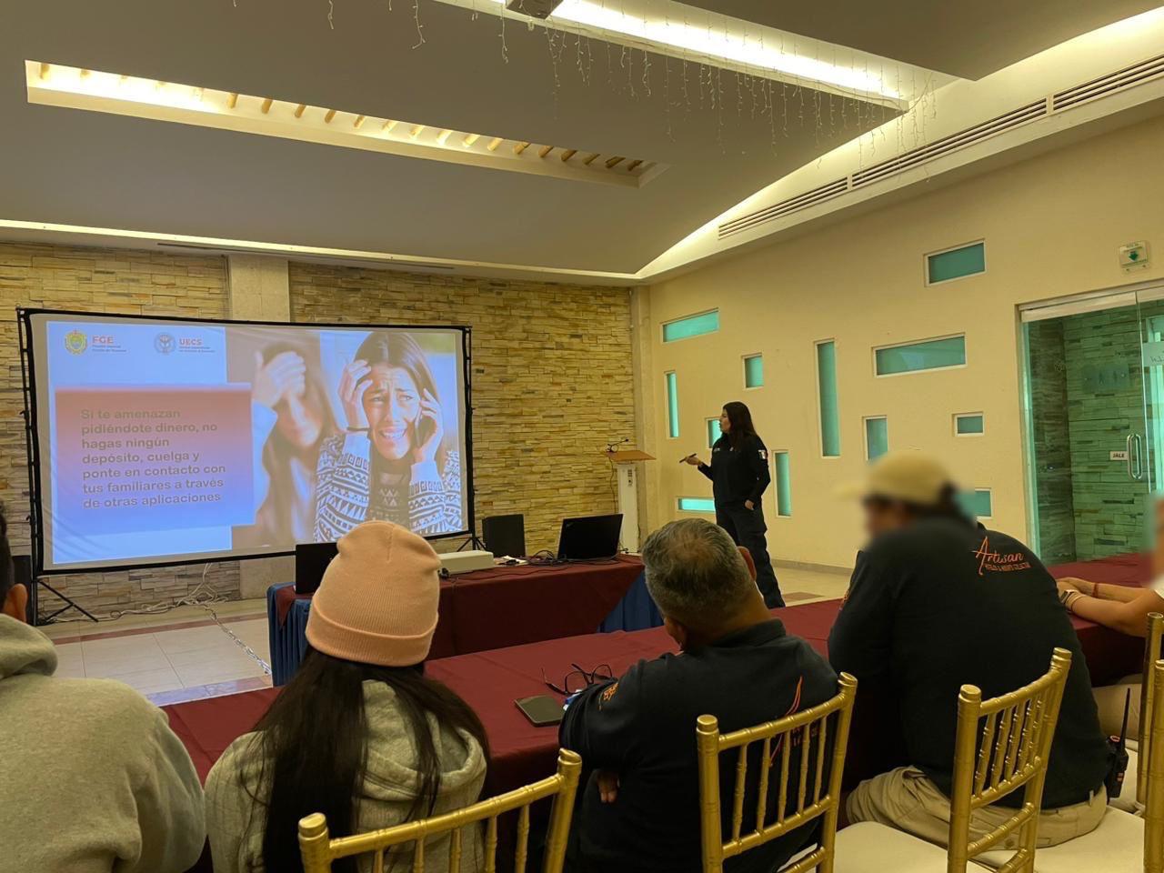 Úrsulo Galván, Ver., 13 de enero de 2026.- La Fiscalía General del Estado informa que la Unidad Especializada en Combate al Secuestro y la Extorsión (UECS) impartió una plática preventiva relacionada con el engaño telefónico y la extorsión, dirigida al personal hotelero y turístico en este municipio.El objetivo de esta actividad fue proporcionar información esencial sobre dichos delitos, así como dar a conocer las modalidades más frecuentes utilizadas por personas dedicadas a estas conductas ilícitas, con la finalidad de fortalecer la prevención y la autoprotección.Durante la plática se expusieron diversas medidas preventivas orientadas a reducir el riesgo de ser víctimas, además de emitir recomendaciones puntuales para la atención de llamadas sospechosas, entre ellas verificar la información, abstenerse de proporcionar datos personales o confidenciales y reportar de manera inmediata cualquier intento de extorsión al número 089 y a la línea directa de la UECS.Con estas acciones, la Fiscalía General del Estado reitera su compromiso de continuar trabajando en favor de la seguridad y bienestar de la sociedad veracruzana.